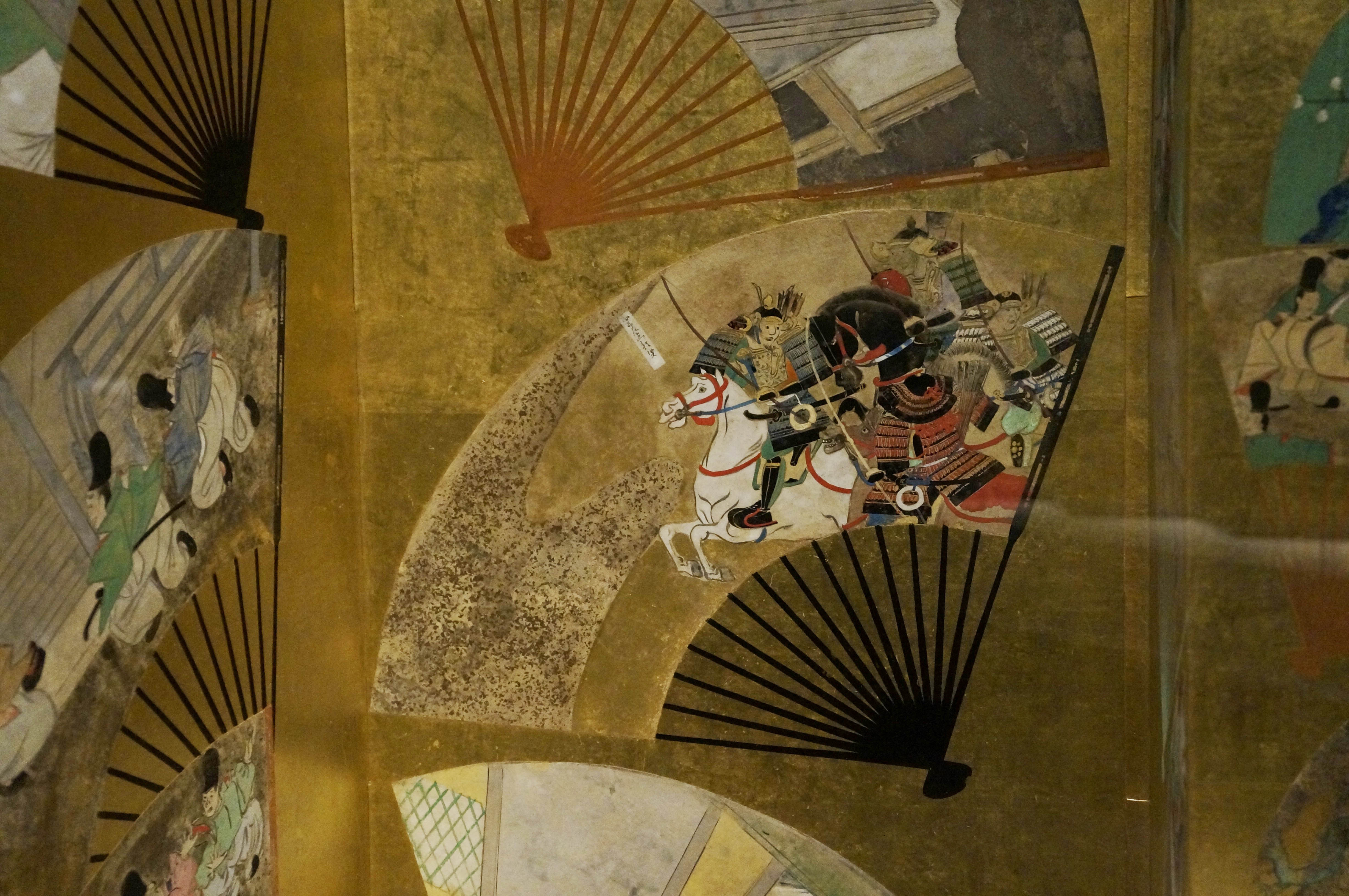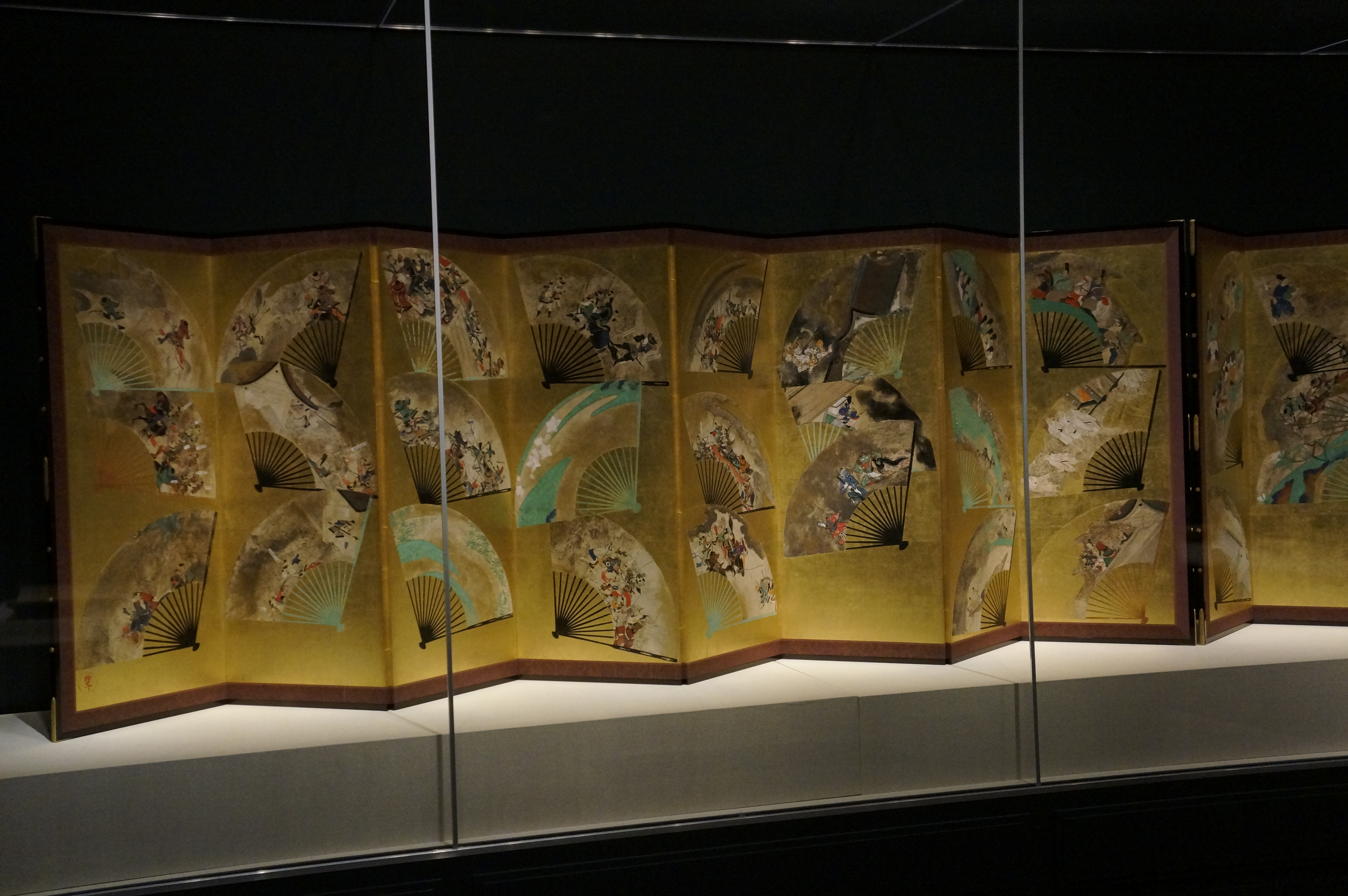 Among the many treasures, besides the opening “Making Waves” screen, is a six-panel folding screen which was commissioned by the Emperor called “Screen with Scattered Fans.” It is on loan from the Imperial Household in Tokyo.