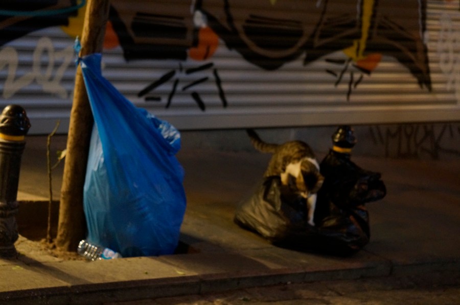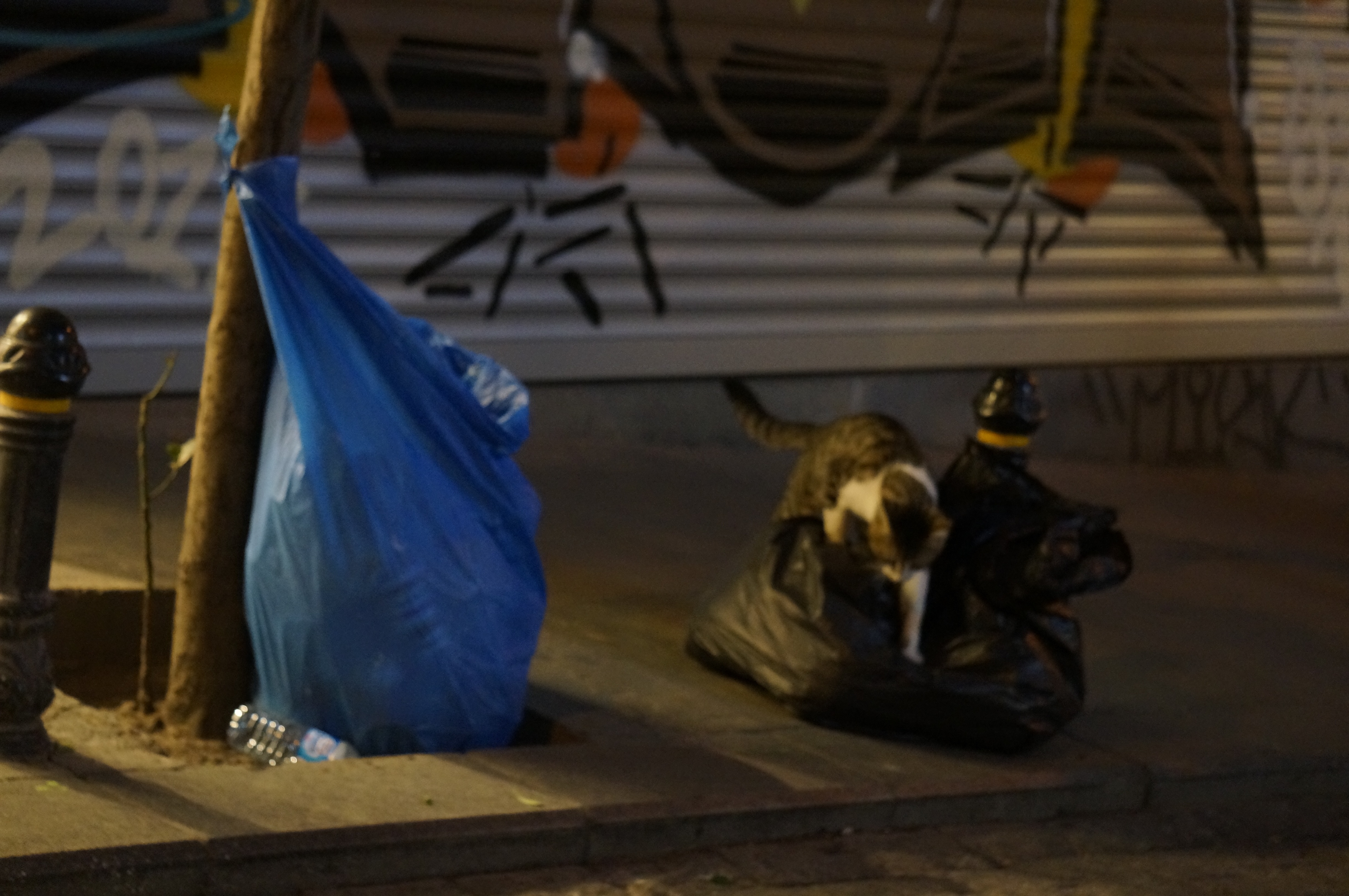 A cat forages for dinner in Istanbul, Turkey, 11/6/15