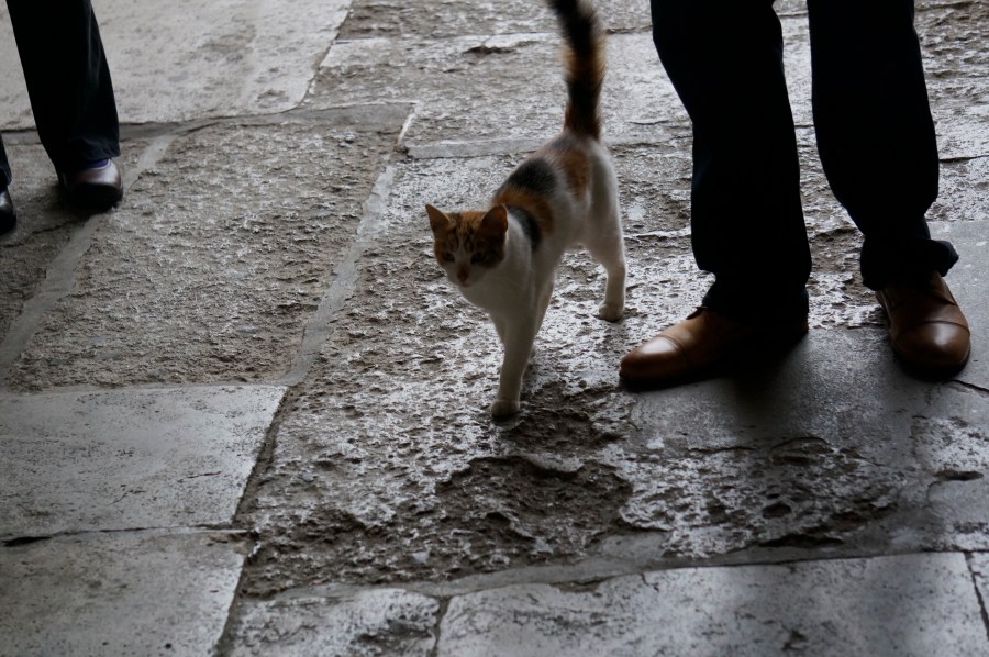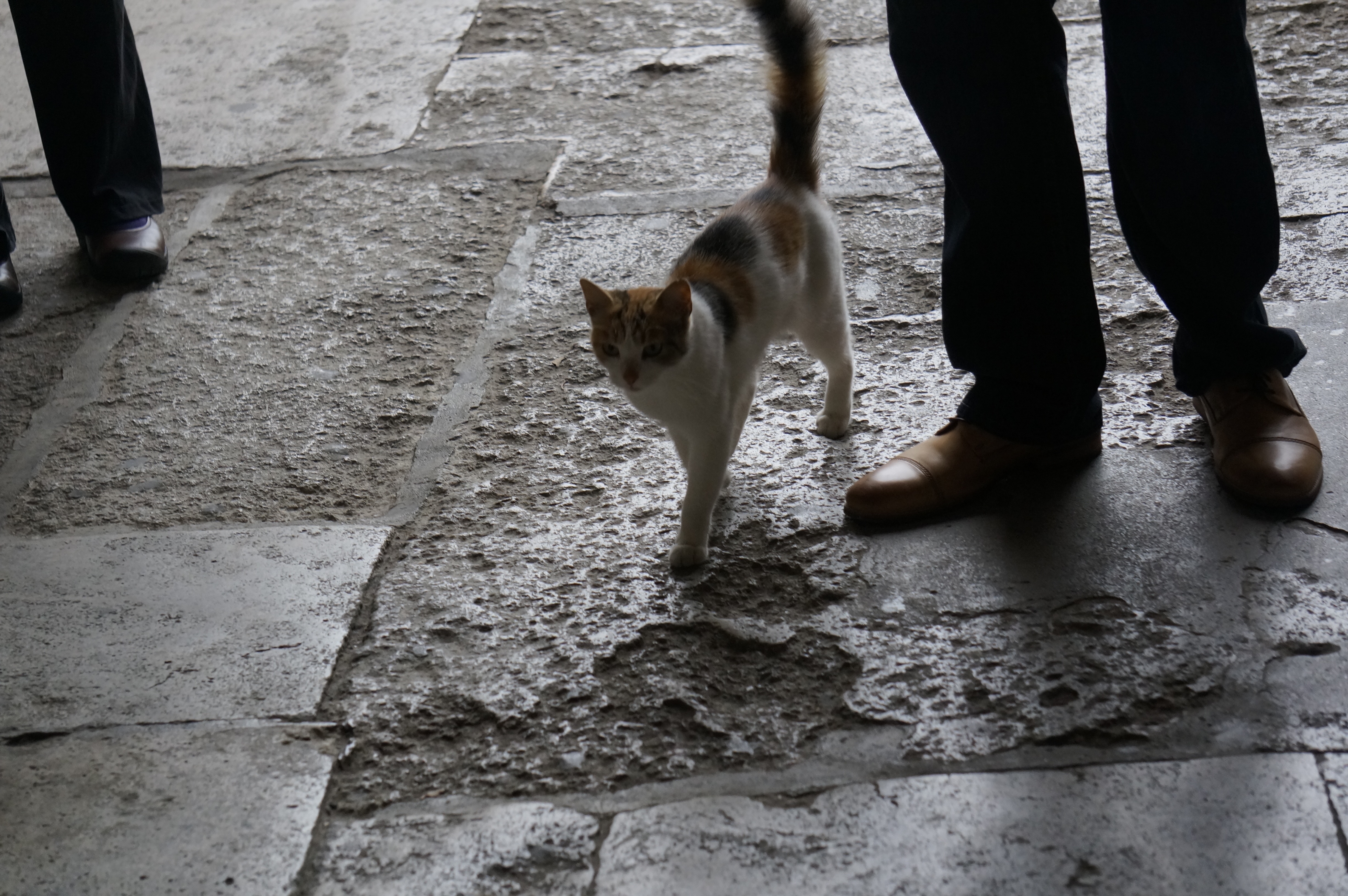 A young cat enters the lower exit of the Aya Sofia in Istanbul, Turkey, 11/7/15