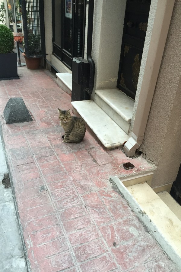 Cat sits outside door in Istanbul, Turkey, 11/9/15