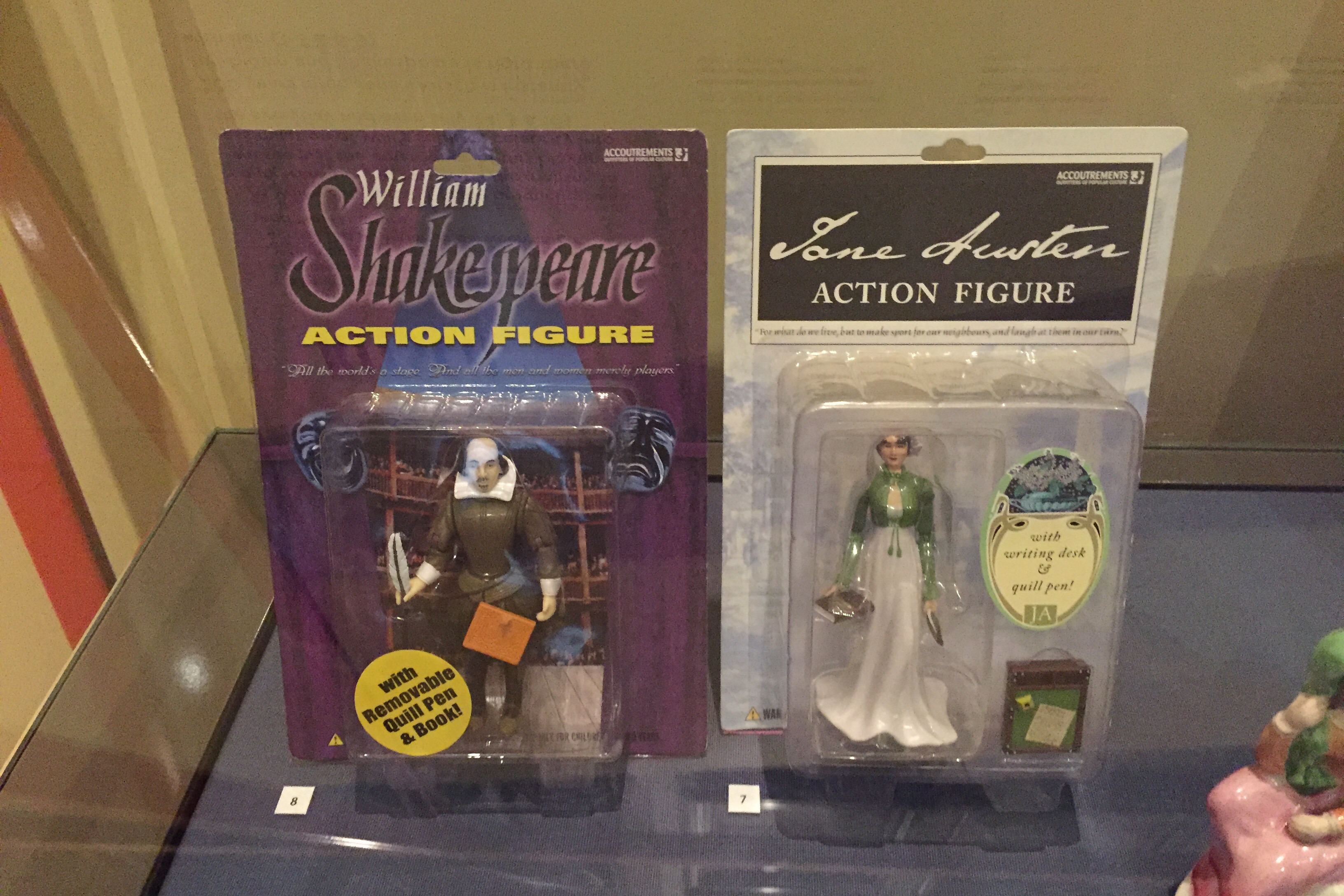The exhibit, “Will & Jane: Shakespeare, Austen, and the Cult of Celebrity” at the Folger Shakespeare Library, is a look at the popularity and the popularization of two classic writers. It’s not a very large, but a very choice, exhibit that covers the plays, books, films, toys, games and centuries of admiration, extending beyond death for some admirers.