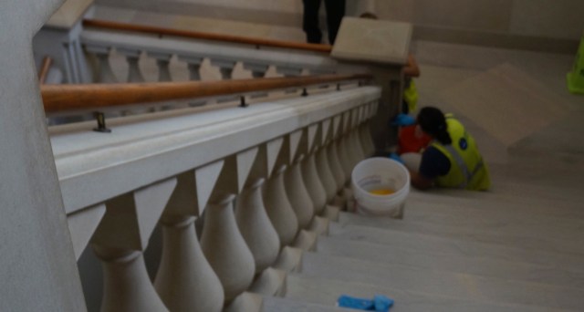 The Freer Gallery of Art cleaned down to their original terrazzo floors and re-designed the ceilings to provide “diffused and reflected light.” The many changes were discussed in my earlier posting here.