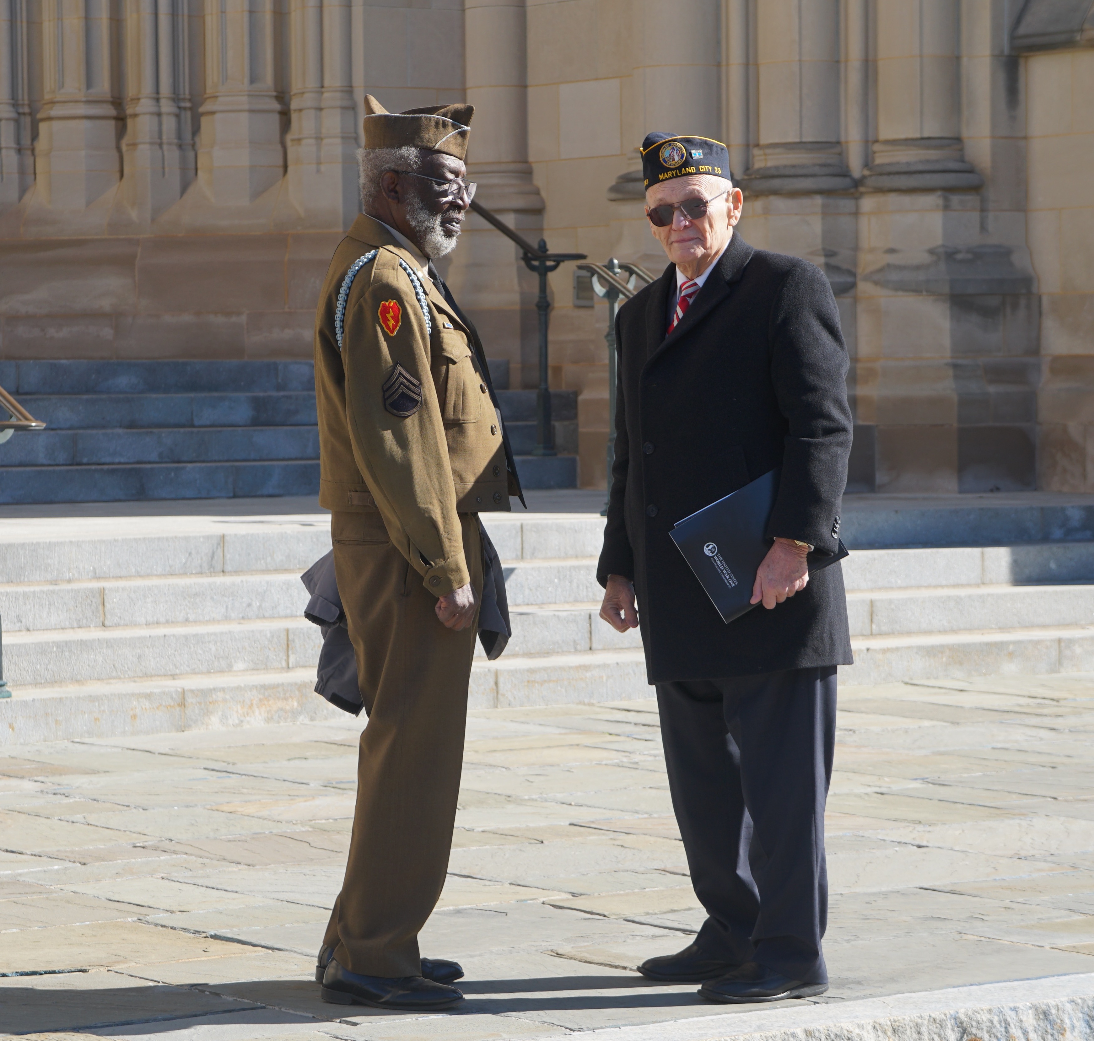 Then they fell silent, and the progression of speakers – congressmen, religious leaders, a bagpiper of the UK’s 4th Batt. The Royal Regiment of Scotland, walked by. The Cathedral Choir sat in the rear. The Color Guard Company C, 8th Regiment, U of MD Army ROTC entered. The service began.