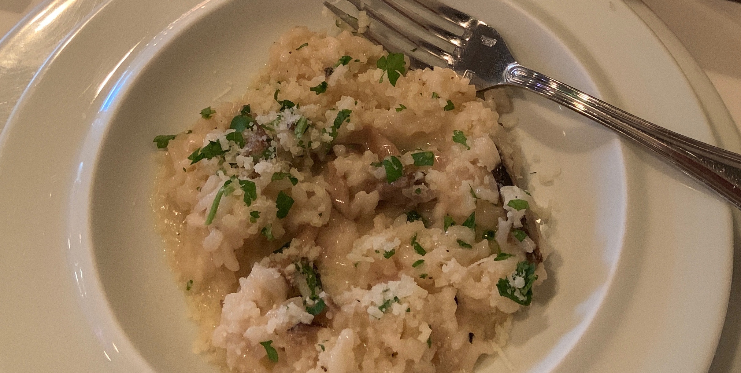 It was raining cold and hard, and a blowing wind nearly took away my umbrella as I walked to Ristorante i Ricchi near Dupont Circle made up for it all. Quiet, half-empty except for several family groups, I had a wonderful waiter who was solicitous without being overwhelming. The warm mushroom riosotto appetizer was the first tip that this restaurant was going to live up to its excellent recommendations. Then came ‘Papparddelle Alla Bosciaola’ which had handmade noodles with tomatoes, sausage, mushrooms, and olives.