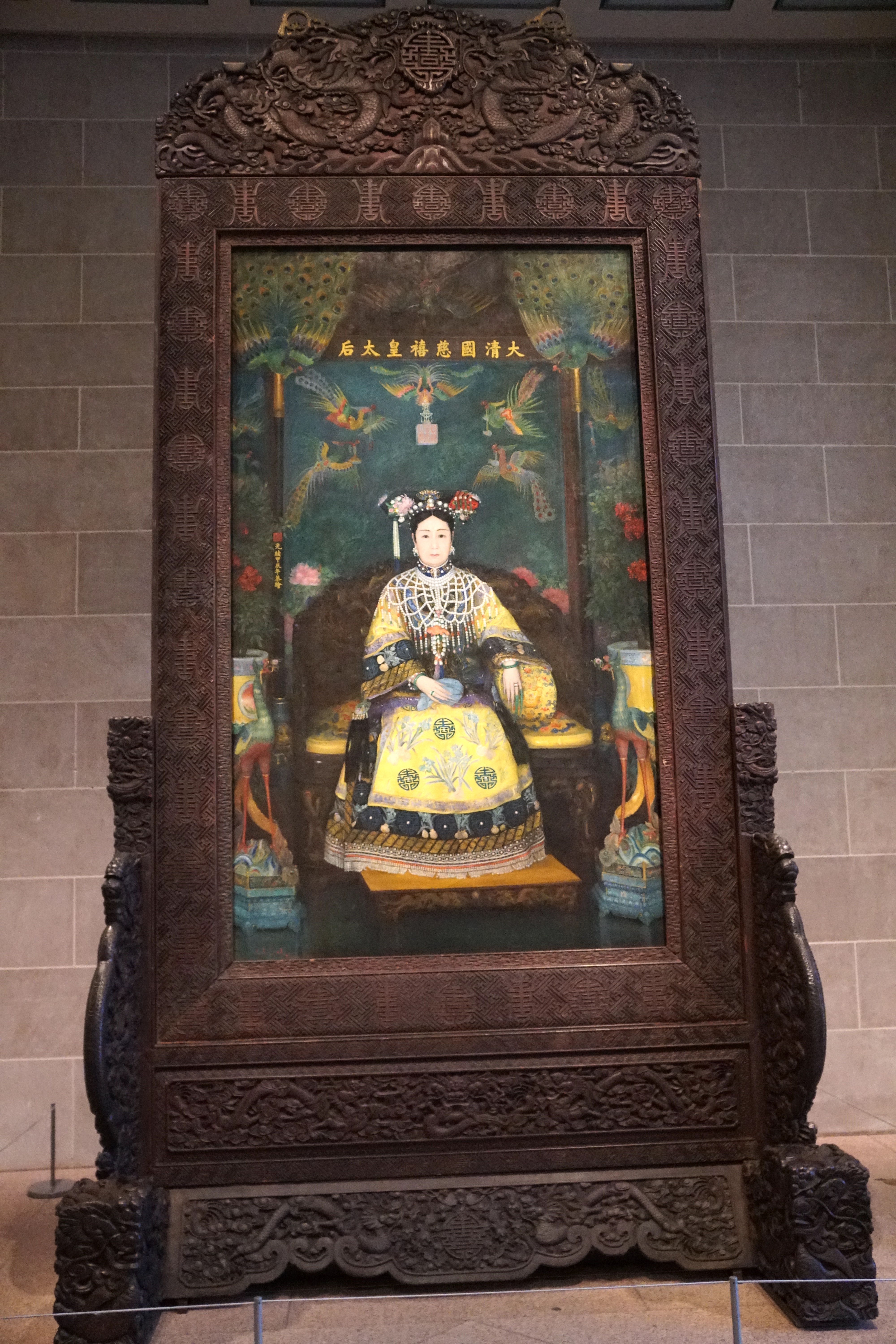 It is Cixi who dominates the exhibit since her long reign stretched into the 20th century. Entering the exhibit, you see a huge portrait in a camphor wood frame.